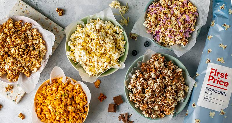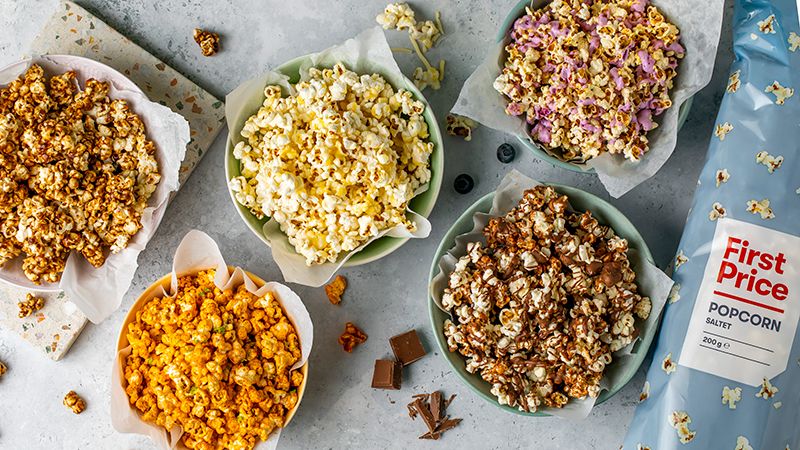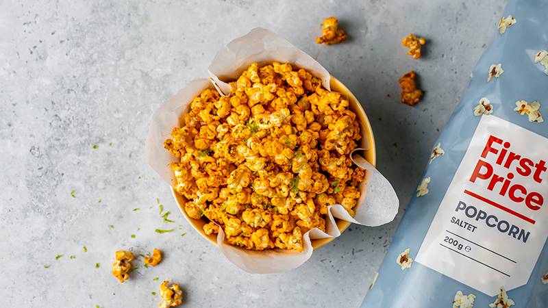 Popcorn-hacks med krydder har vært populært i sosiale medier som TikTok og Instagram en god stund. Med First Price ferdigpoppet popcorn er veien til ferdiglaget snacks ekstra kort, og ikke minst billig. Det er ikke så dumt å være lur!