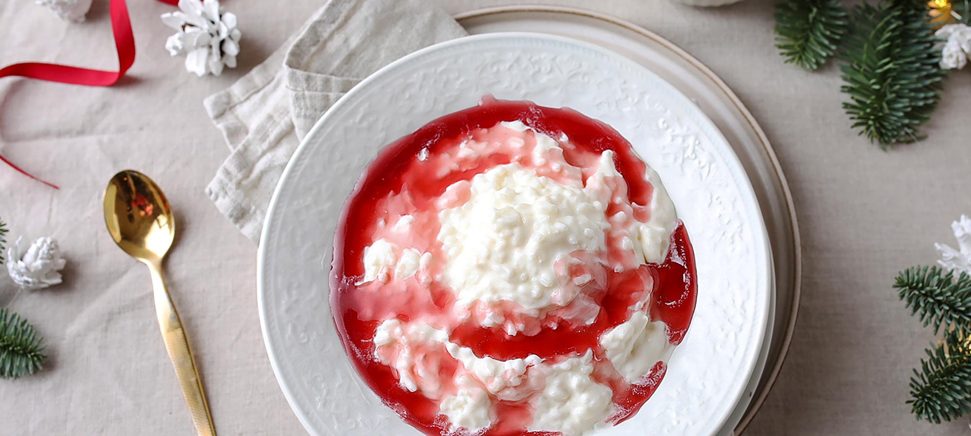 Alt du trenger er risgrøt og kremfløte, samt rød saft til sausen. Har du ikke tid eller lyst til å lage risgrøten fra bunnen av, fungerer det like bra å kjøpe ferdiglaget.